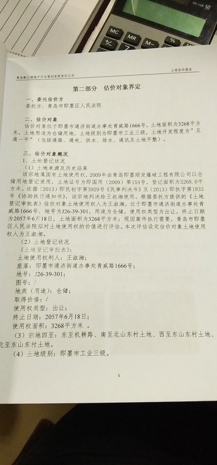 青岛市即墨区通济街道办事处青威路1666号土地,评估价为1941192元,起拍价:1552953.6元,保证金:16万元,增价幅度 :5000元。